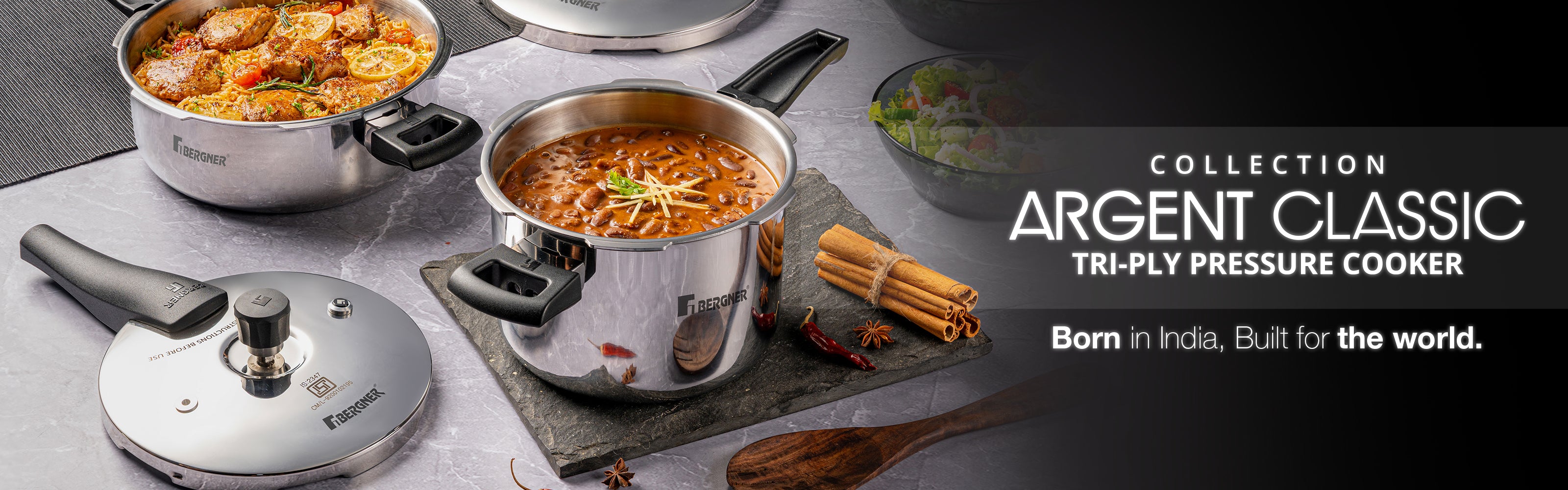 Tailored for today’s Indian homes, Bergner Argent Classic brings next-gen pressure cooking with advanced safety and modern design. Proudly made in India, it makes every meal safer, faster, and easier.