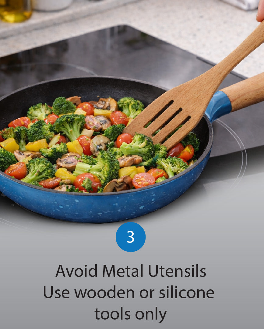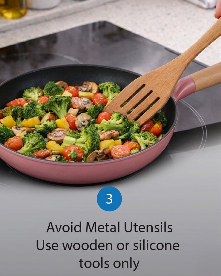 While the enamel surface is scratch-resistant and durable, we recommend using wooden or silicone spatulas to maintain its finish over time.