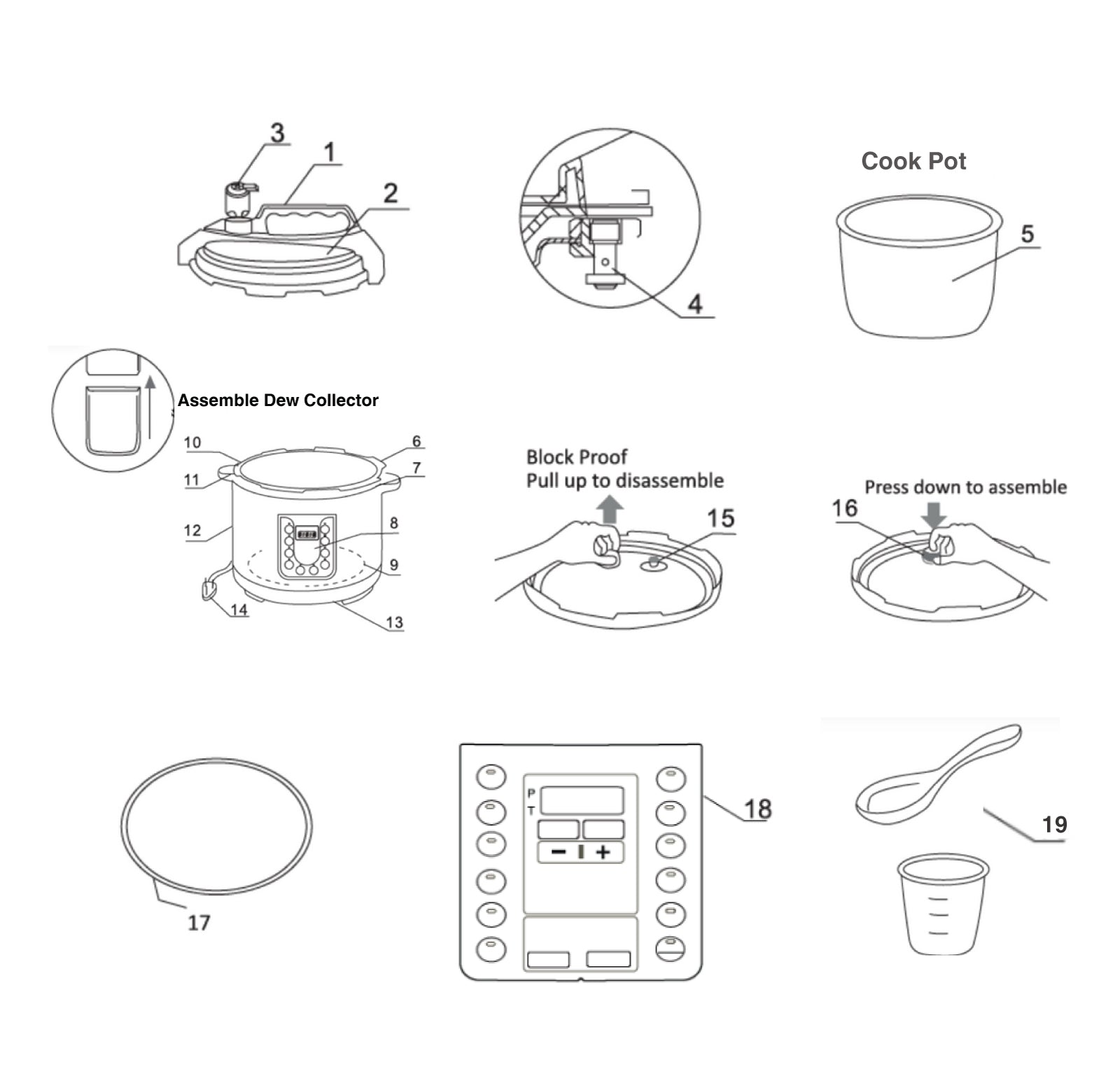 1.Main Cooker Unit (Base) – The outer body with intelligent control panel