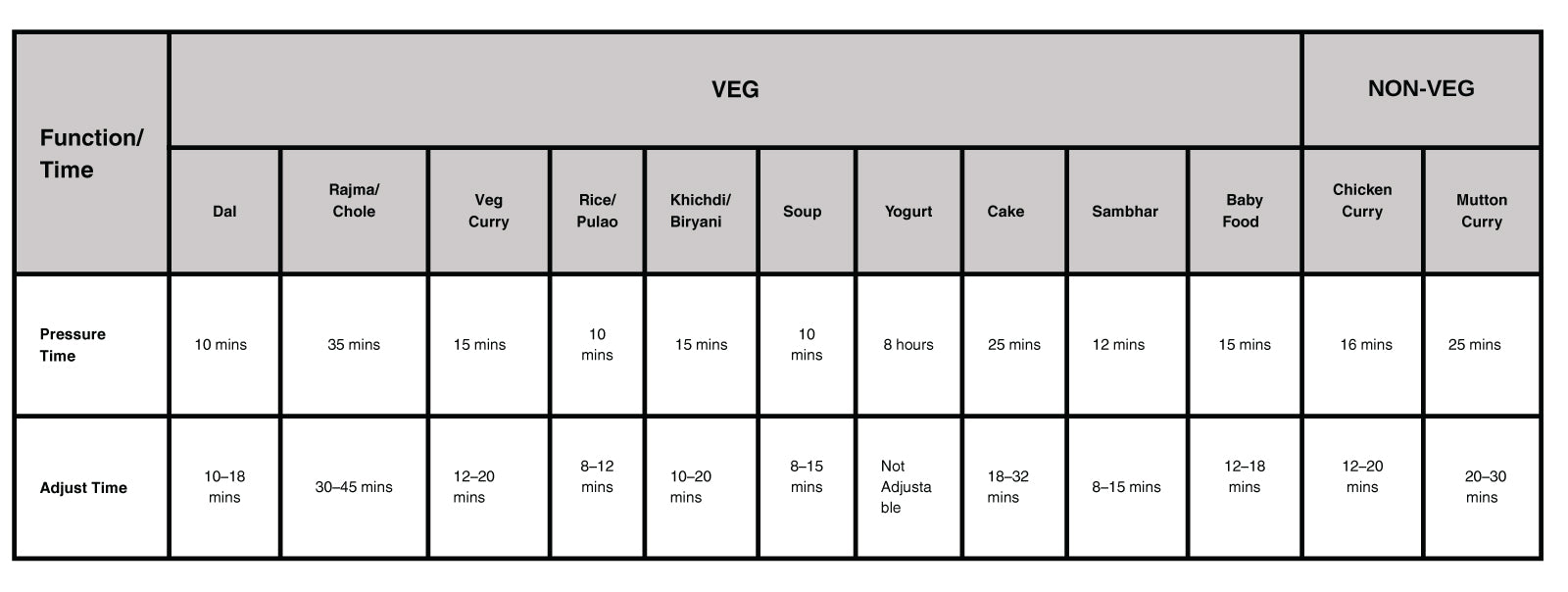 - Temperature: Approx. 110°C for pressure cooking